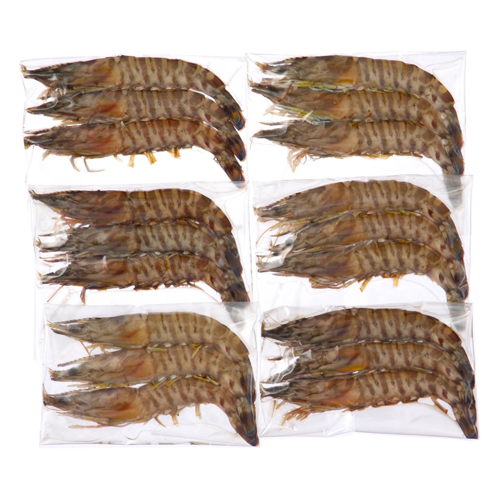 愛知三河湾で水揚げされた天然の車海老を、活きた状態で氷締めし、アルコール凍結。ぜひお刺身で。冷凍真空パックでお届け。