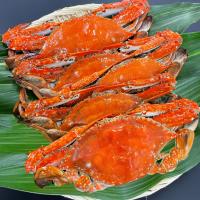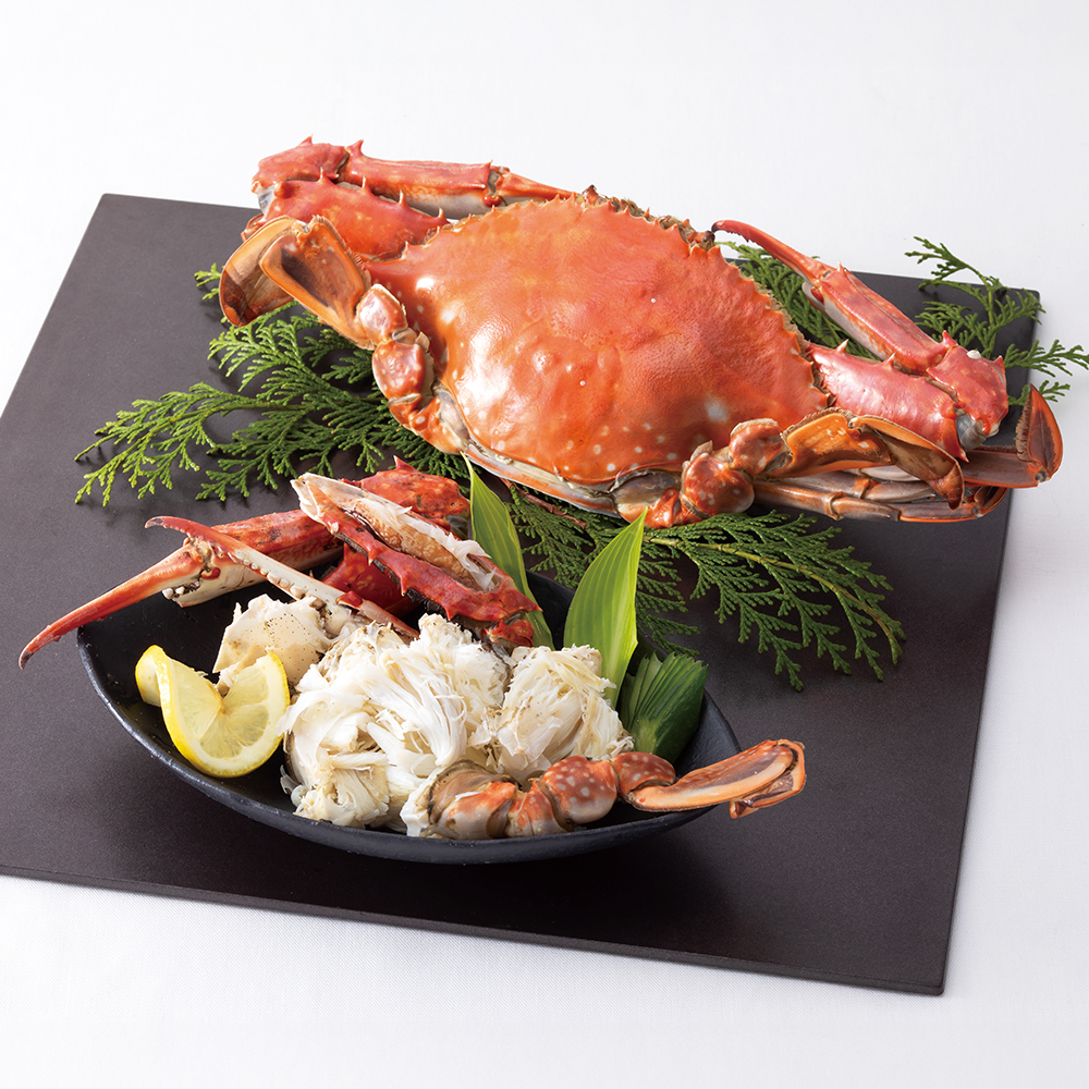 愛知三河湾で水揚げされた渡り蟹をすぐに活〆。漁港近くの自社工場でゆで上げ後、急速冷凍し、鮮度とおいしさを閉じ込めました。