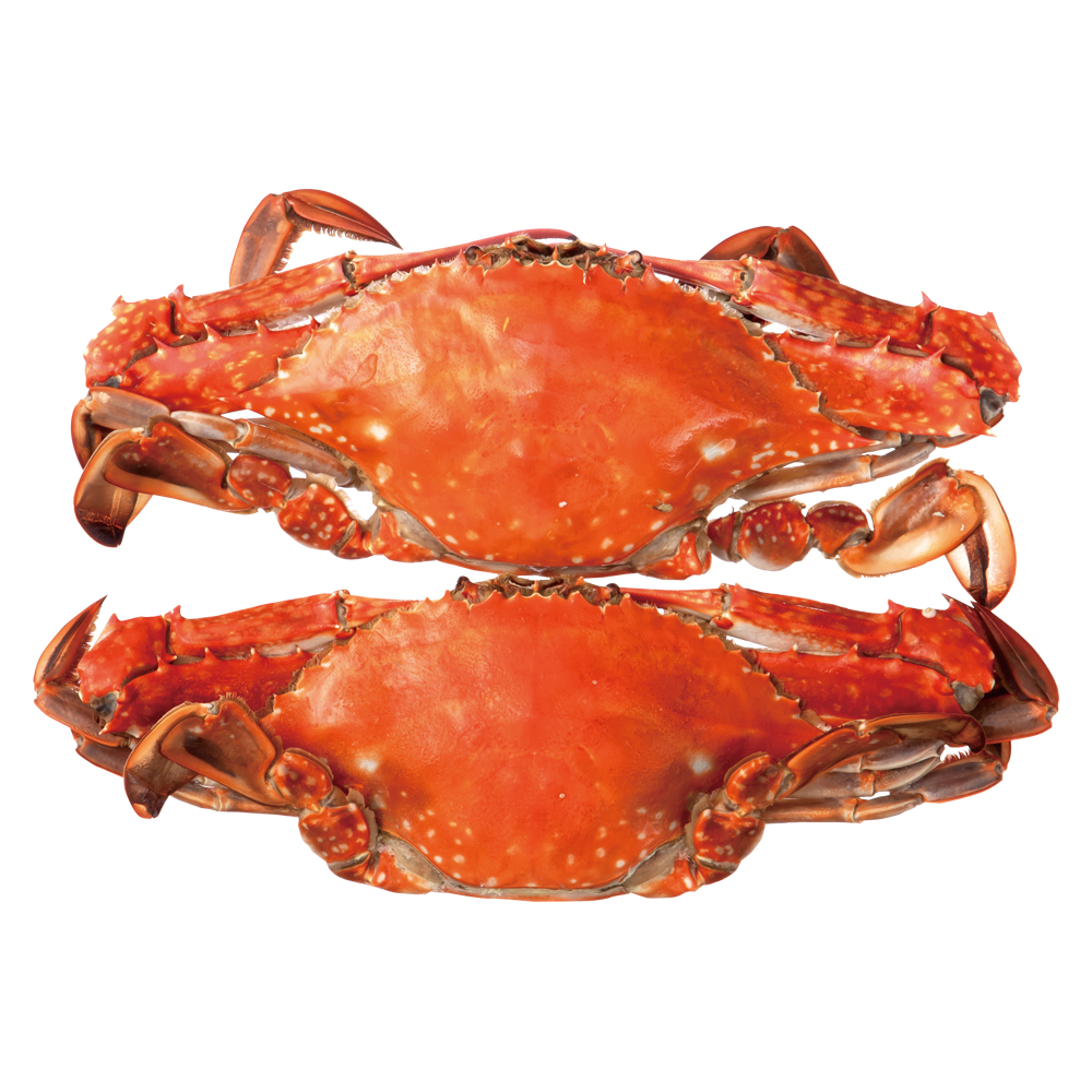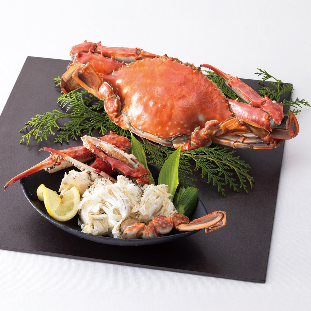愛知三河湾で水揚げされた渡り蟹をすぐに活〆。漁港近くの自社工場でゆで上げ後、急速冷凍し、鮮度とおいしさを閉じ込めました。
