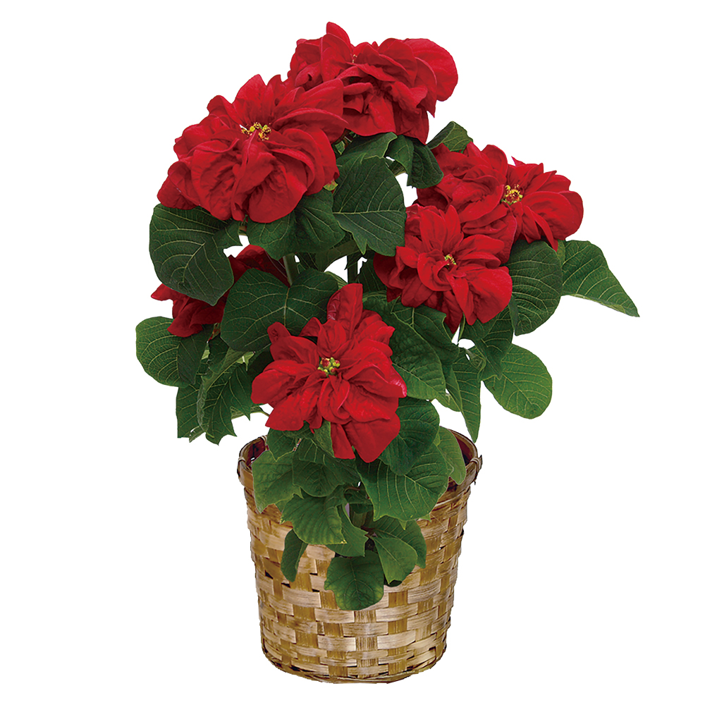 ポインセチア、バスケット入り、約幅20×高さ40cm、約1.0kg ※配達日指定不可 お届け時期:12月2日まで(承り期間:11月25日まで)