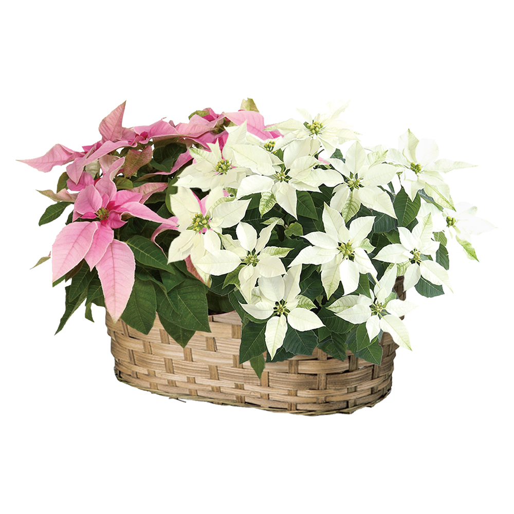 プリンセチア4号×2鉢、バスケット入り、約幅35×高さ30cm、約1.5kg ※配達日指定不可 お届け時期:12月2日まで(承り期間:11月25日まで)