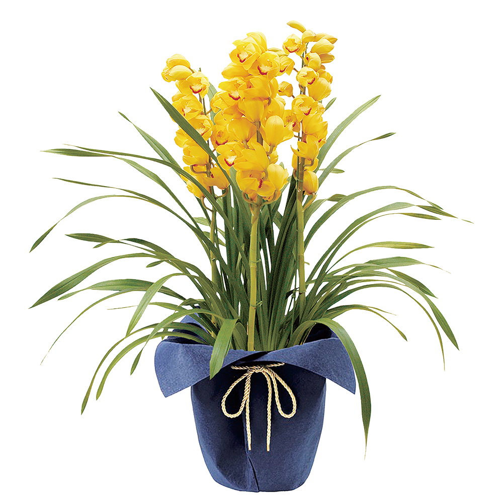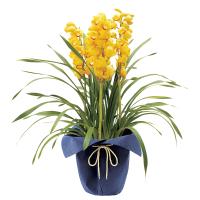 シンビジューム(イエロー系)、不織布鉢カバー付き、約幅25×高さ80cm、約3.0kg ※配達日指定不可