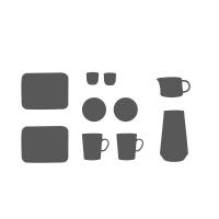 <セット内容>マグ×2、ミニカップ×2、プレート(15×19cm)×2、プレート10.5cm×2、ピッチャー0.35L×1、ベース19cm×1 計10点