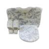 光沢のある糸を使ったモダンデザインのトイレタリーのセットです。ラインストーン使いが高級感を演出しています。