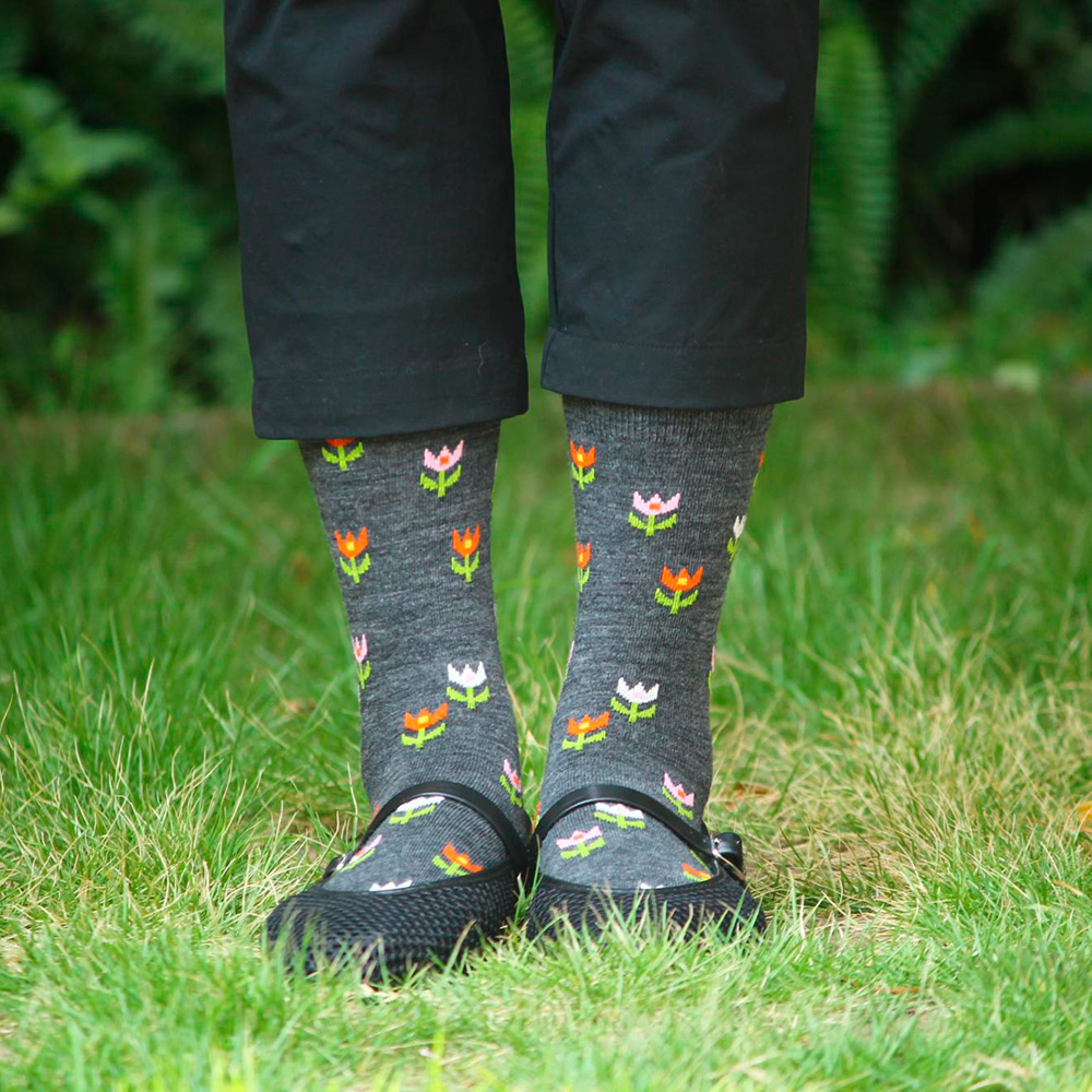 吸湿性や保温性のあるウールは、寒い冬はもちろん、汗をかく夏もさらっとした履き心地で、1年を通して活躍します。ギフトにも喜ばれます。足元からチラリと覗くキュートなデザインが、こなれ感あふれるお洒落コーデを完成させます。