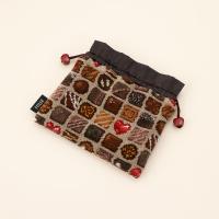 口を絞るとフリルのようなディティールになるので是非フリルバッグと一緒にディスプレイしていただきたい商品です。玉止めに使用しているハートパーツは柄とも連動しているのがポイントです。