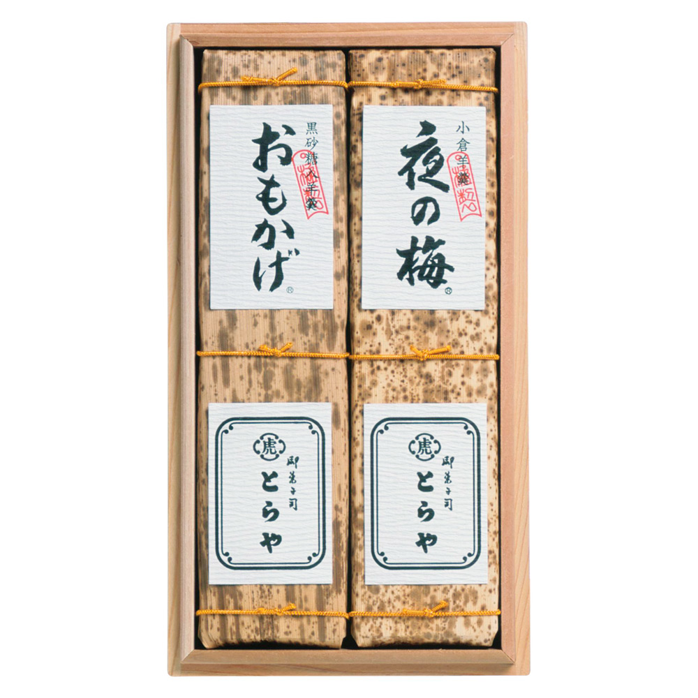 永きにわたり愛される「夜の梅」と「おもかげ」を、印籠杉箱に詰め合わせました。