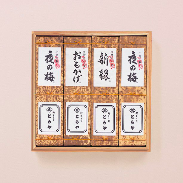 とらやは室町時代後期の京都で創業、5世紀の永きにわたって菓子屋を営んでまいりました。後陽成天皇御在位中(1586~1611)より、御所の御用を勤め、今に至っております。明治2年(1869)、東京遷都の際、明治天皇にお供し、京都の店はそのままに東京にも店を開設しました。とらやを代表する竹皮包みの羊羹は、江戸時代の御用記録にも残る歴史のあるお菓子。じっくりと時間をかけて煉りあげた伝統の味は、贈りものとしてご好評をいただいています。
