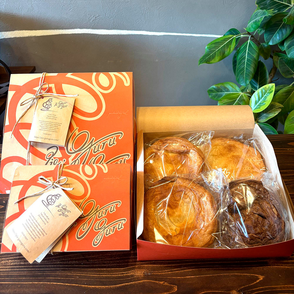 発酵バターを折込んだ自家製パイ生地と手作りフイーリングが一体となり優しく深い味わいとなります。 お子様からご年配の方まで幅広い方々にお召し上がりいただいております。「アップルパイミニホール」:りんごのフィリング、カスタードクリームも自家製で甘さ控えめでしあげております。軽い食感で最後までおいしくお召し上がりいただけます。(りんごは半部にカットした物がゴロっと入っております)「生チョコレートパイミニホール」:甘さの加減を追求した滑らかな口どけのよい生チョコレートが食べ応えがあります。「さつまいもとチーズケーキパイミニホール」:さつまいもと濃厚チーズケーキを発酵バターのパイ生地で焼きあげました。「ミートパイミニホール」:2日間じっくり煮込んだミートソースは奥深い味わいです。