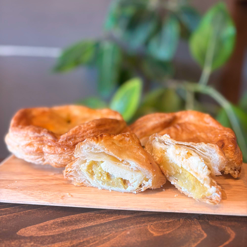 発酵バターが香るふんわりサックサックと軽い食感のパイ生地。口の中でほろほろと崩れ発酵バターの香りがひろがります。