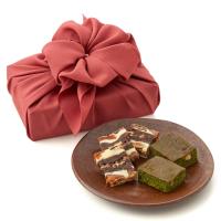 一善やの看板商品「干柿と胡桃と無花果のミルフィーユ」に、宇治田原の抹茶を使った「お濃茶ブラウニー」を添えた詰め合せ。大切な方への贈りものや季節のご挨拶にふさわしい、こころ温まるギフトです