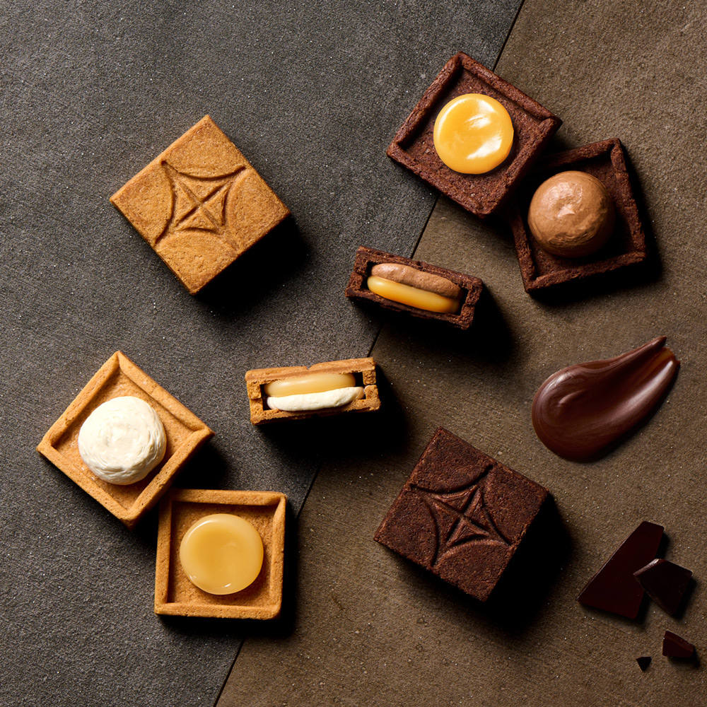 ブランド誕生から愛されているバターサンド〈オリジナル〉は、サクサク食感のクッキーに、濃厚なバタークリームと口どけなめらかなバターキャラメルの2層を挟んだバターサンドです。バターをたっぷり使い、バターそのものの風味を楽しめる味わいと食感に仕上げました。バターサンド〈チョコレート〉は、ベルギー産チョコレート(※)を使用したビター風味のチョコレート生地に、クーベルチュールのダークチョコレートを使用したチョコレートバタークリームと、口どけなめらかなバターキャラメルを挟んだ、季節を問わずいつでも手に取りたくなる美味しさです。※原料に使用しているチョコレートのうち、ベルギー産は43%です。
