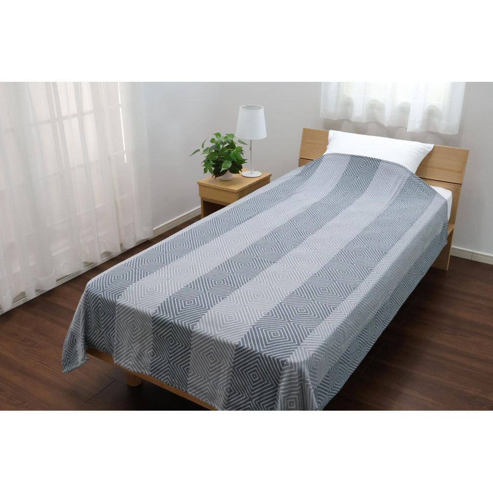 表面は羽毛布団がずれにくい織を採用しています。肌面には心地よい軽量タイプのウールを使用しています。両面を起毛することで一度使用すると手放せないやさしい風合いに仕上げました。国産毛布の90%以上が生産されている、「毛布のまち」泉大津でつくられています。