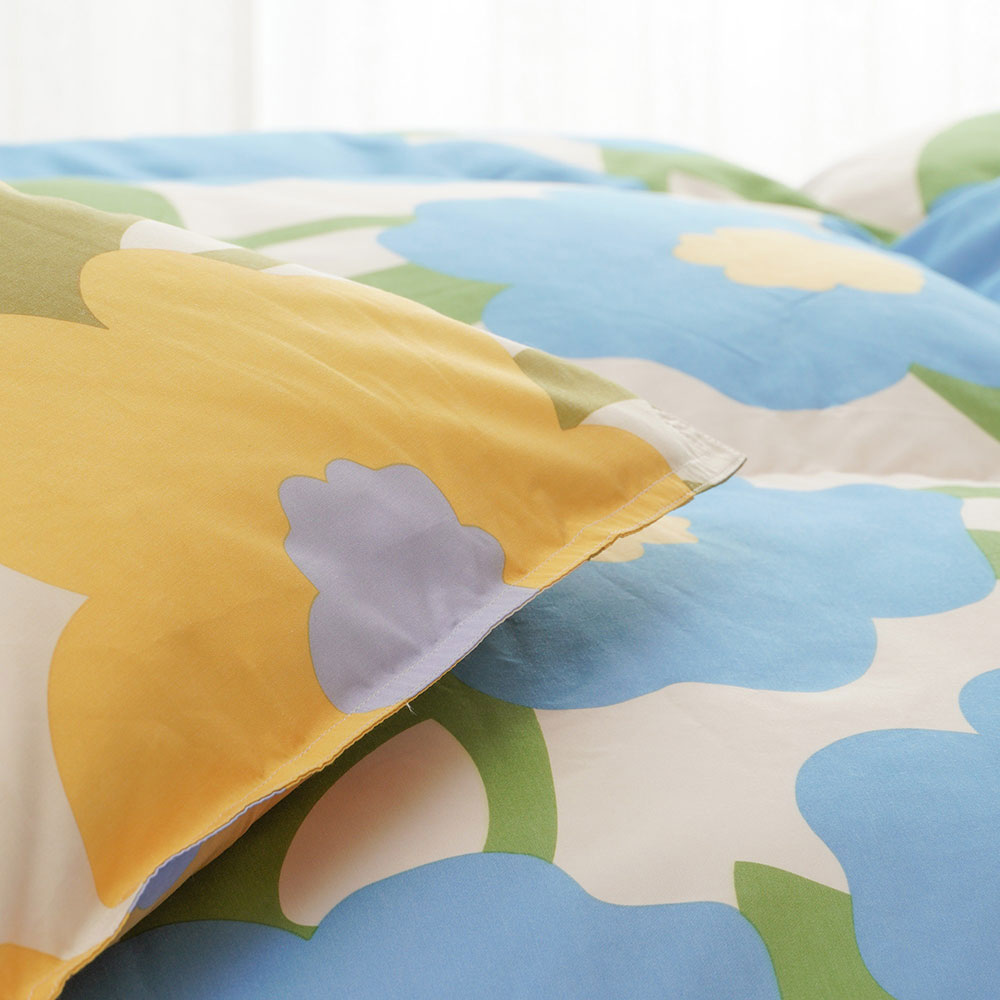ダウン85%(ダウンパワー:330)の羽毛掛ふとんです。羽毛掛ふとん・掛ふとんカバーはスペインのデザイナー、シビラデザインの自然をモチーフにした可愛らしい色・柄です。掛カバーは8ヶ所ひも止め付で、着脱が便利なスナップ式です。羽毛掛ふとんはソフトタッチで軽くドレープ性のある新合繊生地を使用し、キルティングは羽毛が偏りにくい立体キルトを使用しています。