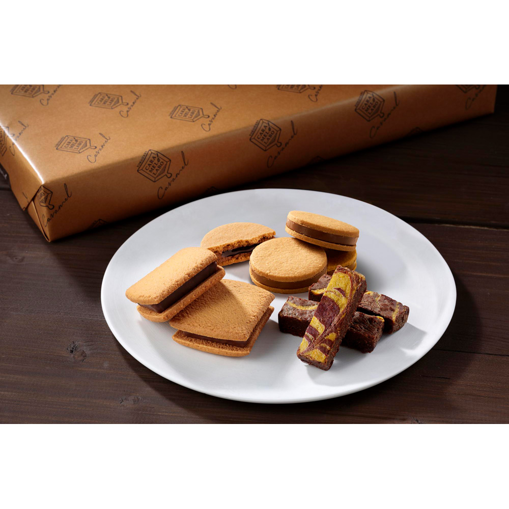 キャラメルブラウニー オレンジ 7個、キャラメルティサンド 6個、キャラメルショコラサンド 4個