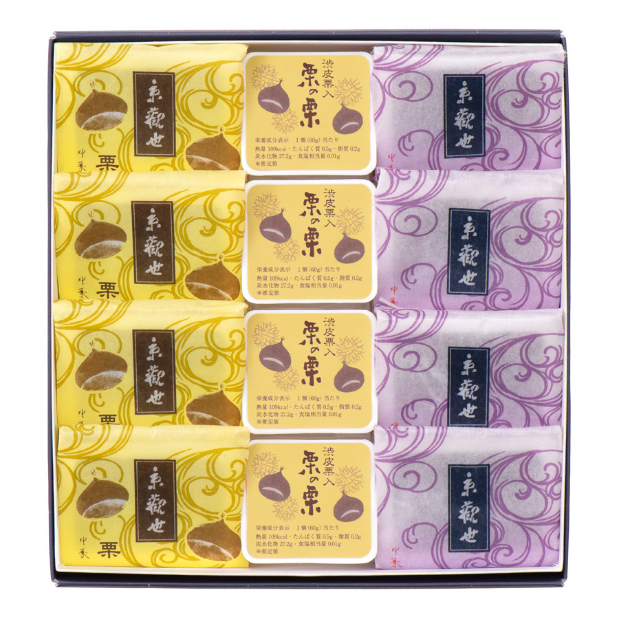 京観世栗(個包装)×4、京観世(個包装)×4、渋皮栗入り栗の栗×4