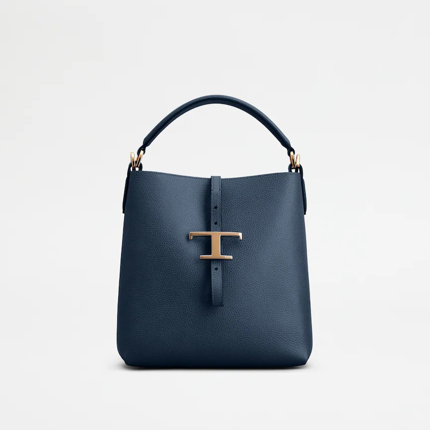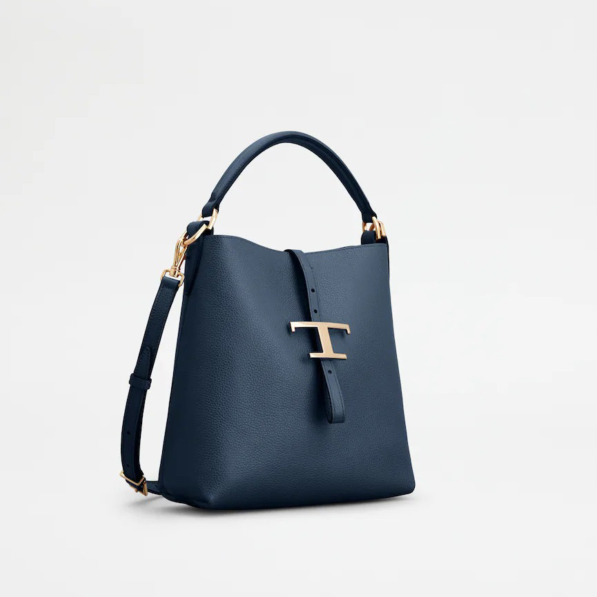 柔らかなカーフ レザーを用いた、丸みのあるシルエットのミニ バケット バッグ。広いコンパートメント、アイコニックなロゴ入りの T タイムレス メタル ペンダント、トップ ハンドル、取り外し可能なショルダー ストラップを合わせました。