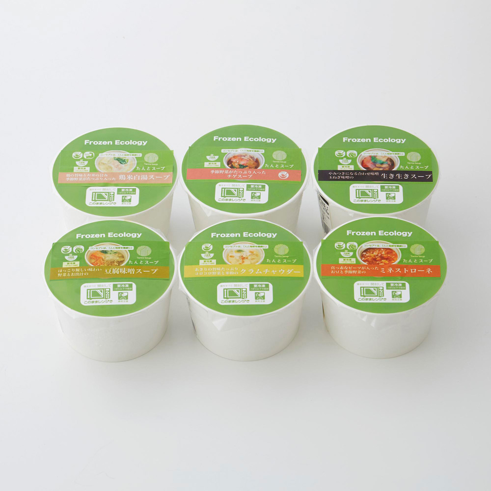 冷凍スープ170g× 6個入り(あさりの旨味たっぷりコロコロ野菜と米粉の「クラムチャウダー」、真っ赤なビーツが入ったお豆と季節野菜の「ミネストローネ」、鶏の旨味とお米の甘み季節野菜がたっぷり入った「鶏米白湯スープ」、野菜を食べる辛旨スープ季節野菜がたっぷり入った「チゲスープ」、ほっこり優しい味わい「野菜とお出汁の豆腐味噌スープ」、やみつきになる合わせ味噌「玉ねぎ味噌の生き生きスープ」)