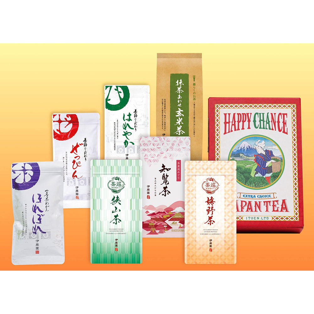 ほれぼれ80g、ぜっぴん80g、はれやか80g、知覧茶80g、狭山茶50g、嬉野茶50g、抹茶あわせ玄米茶160g