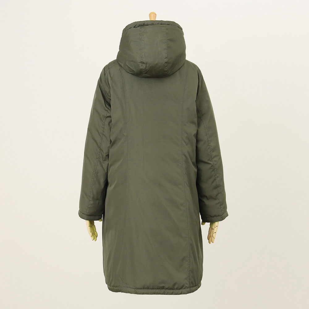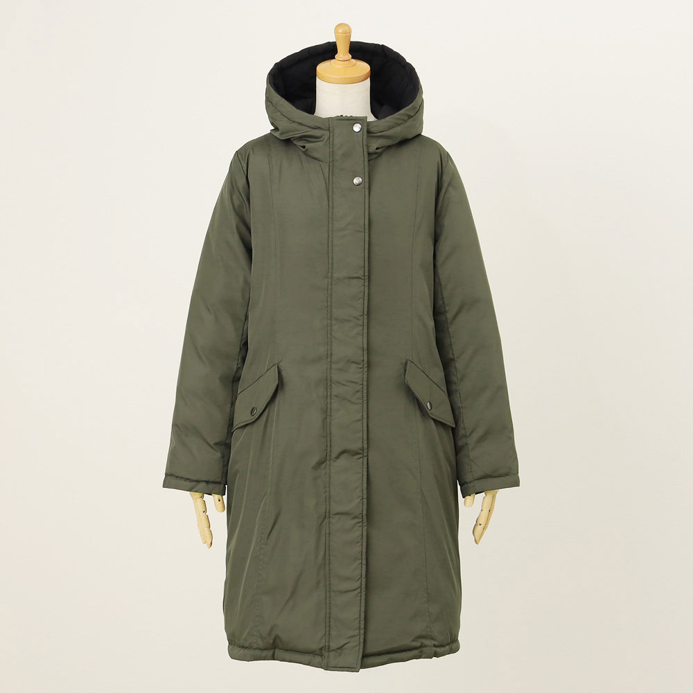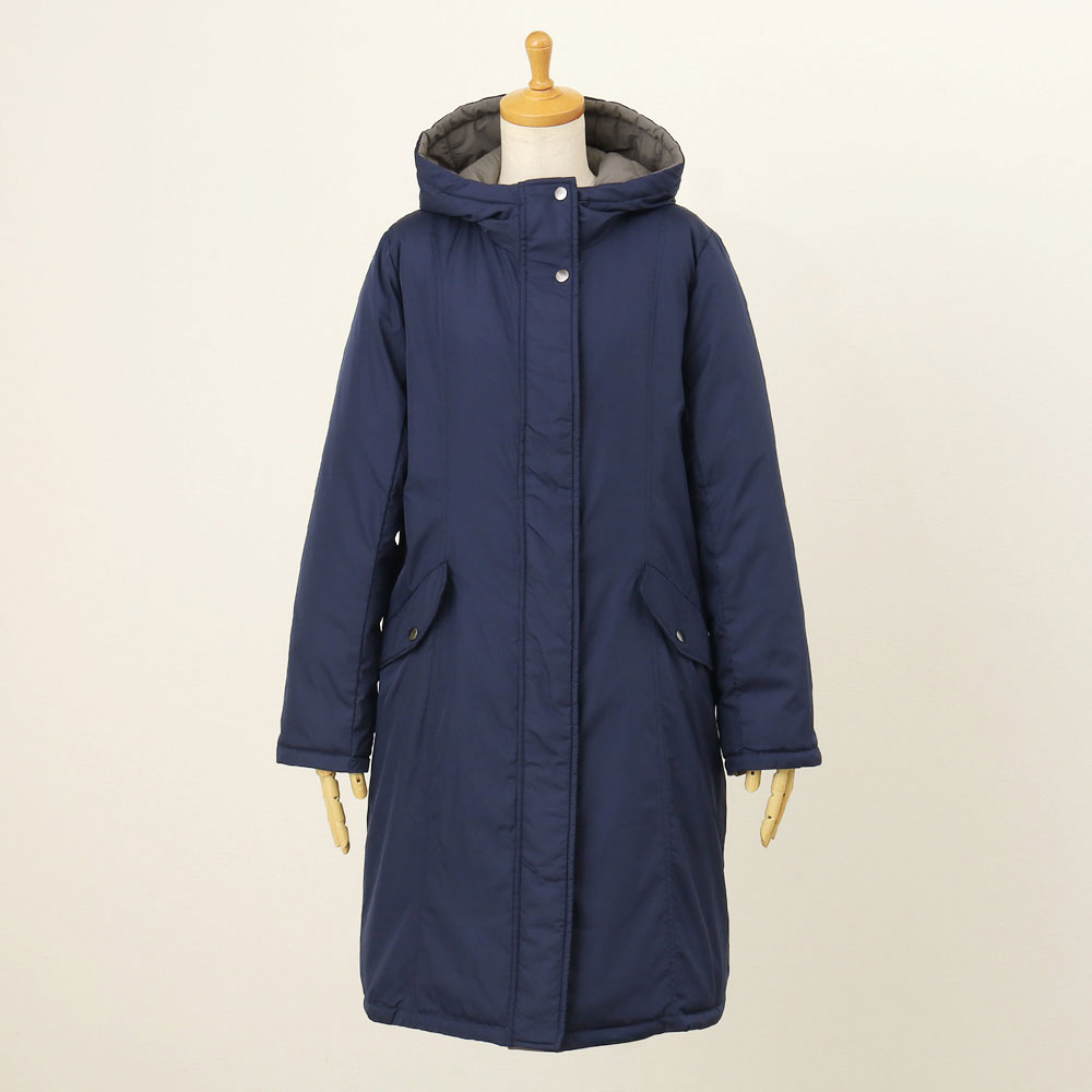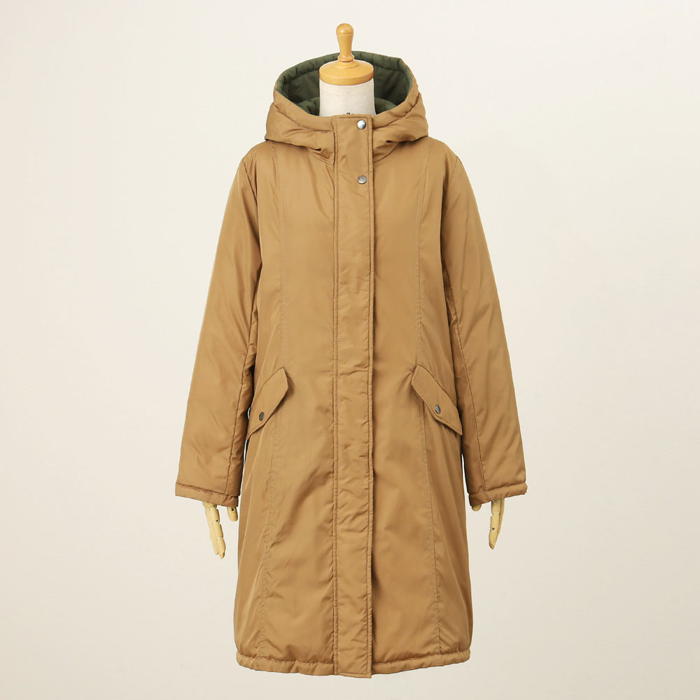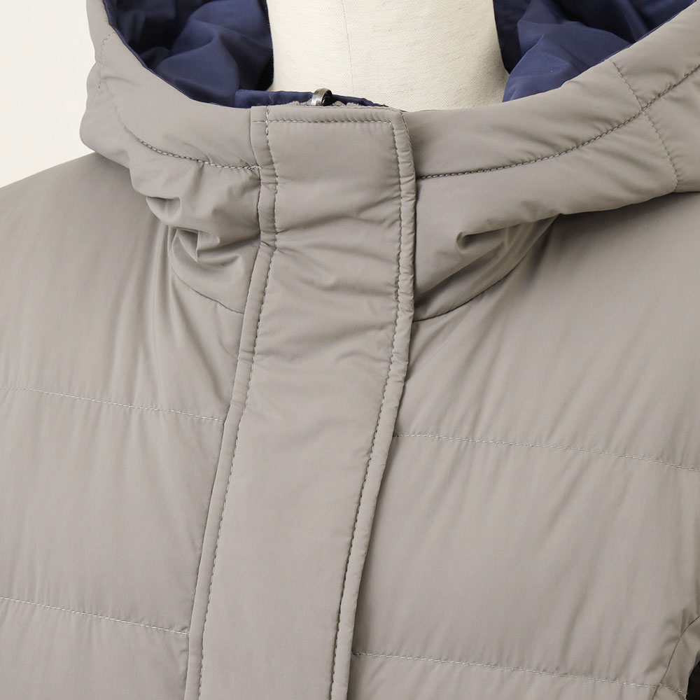<リバーシブルダウンコート>表地:ナイロン92%・ポリウレタン8%、裏地:ポリエステル100%、詰物:ダウン80%・フェザー20%、中わた:ポリエステル100%(フード・前立て・フラップ・片玉縁に使用)