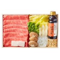 すき焼に適した黒毛和牛の肩・肩ロースのお肉と野菜、わりしたをギフト用木箱にお詰合せしました。浅草今半のすき焼をご家庭でお楽しみいただけます。