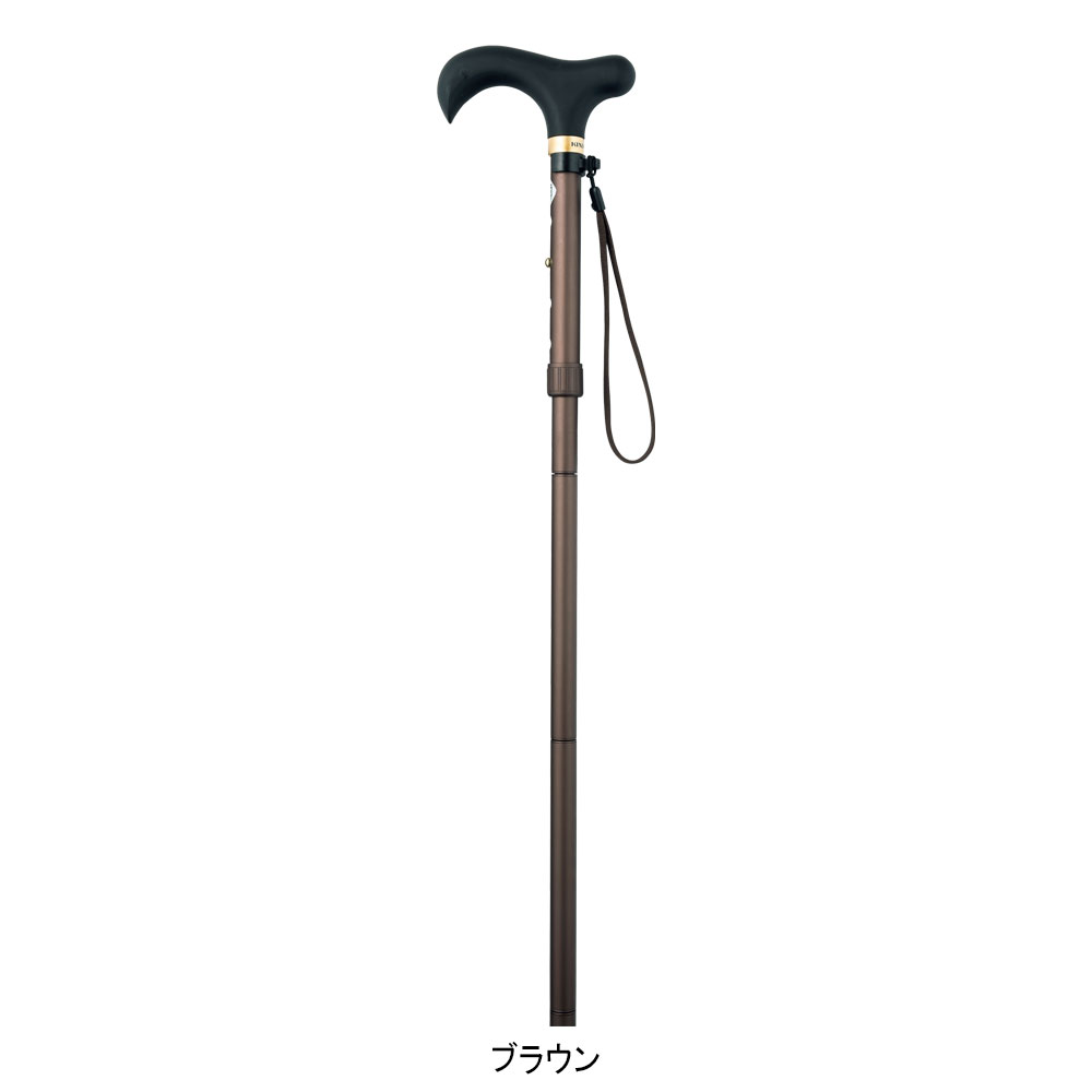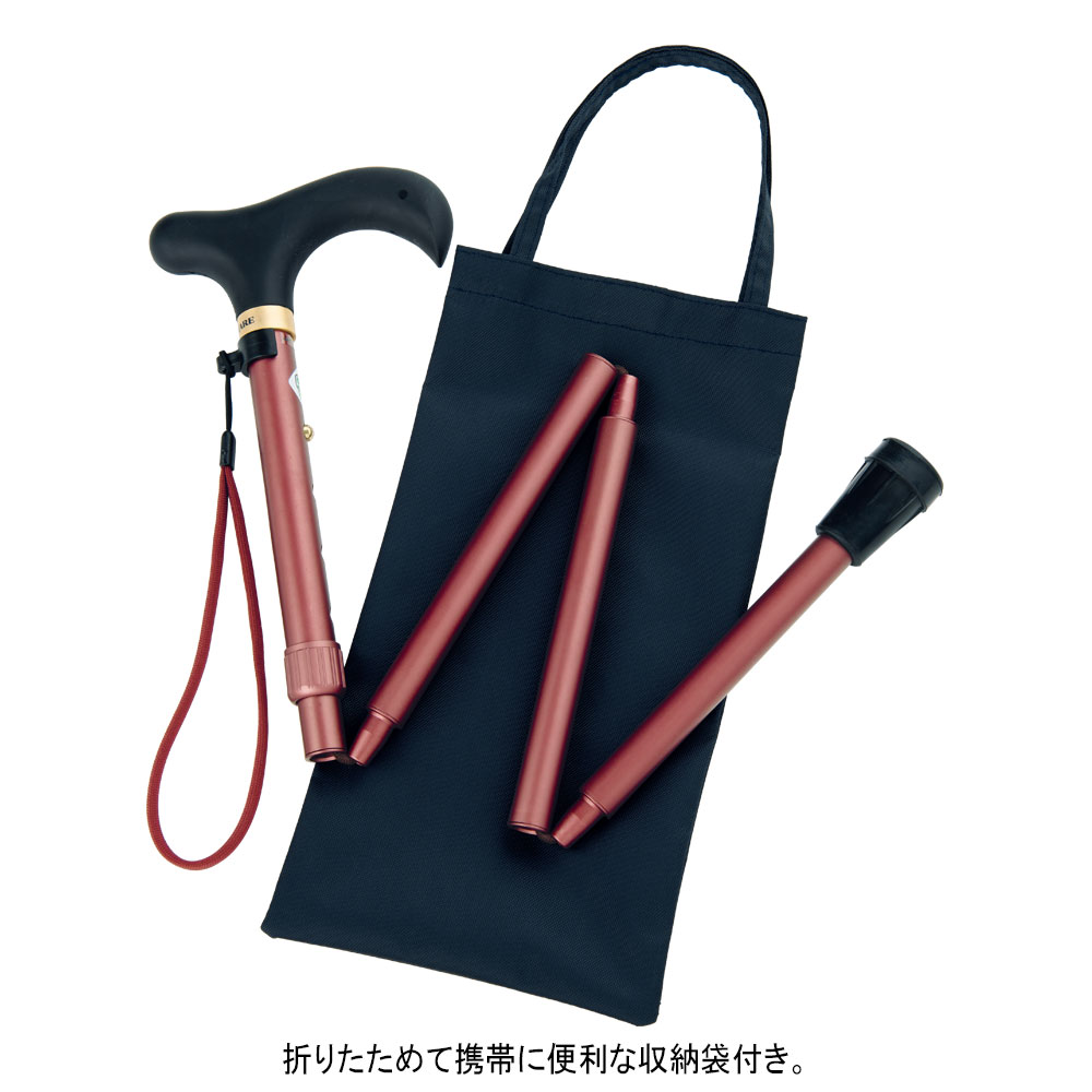 装いに合わせやすい無地のステッキ。折りたたんでコンパクトに携帯できます。M、Lサイズをご用意。
