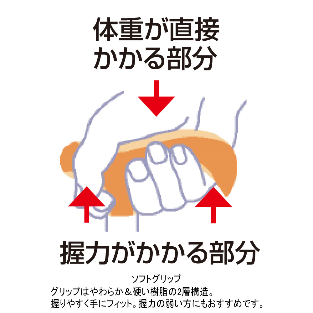 握力の弱い方でも握りやすいソフトグリップステッキ。