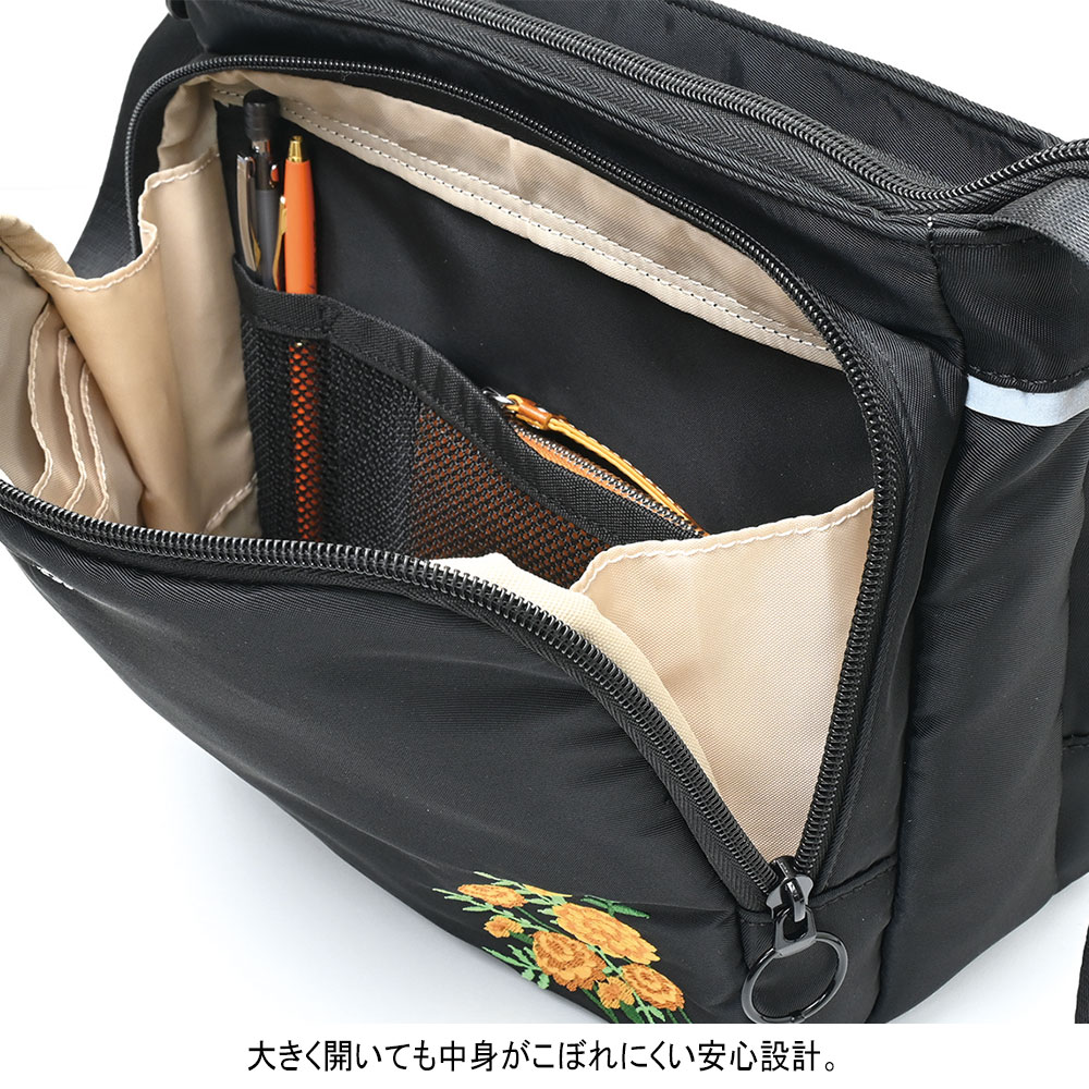 マリーゴールド(花言葉は健康)の刺しゅうがアクセント。