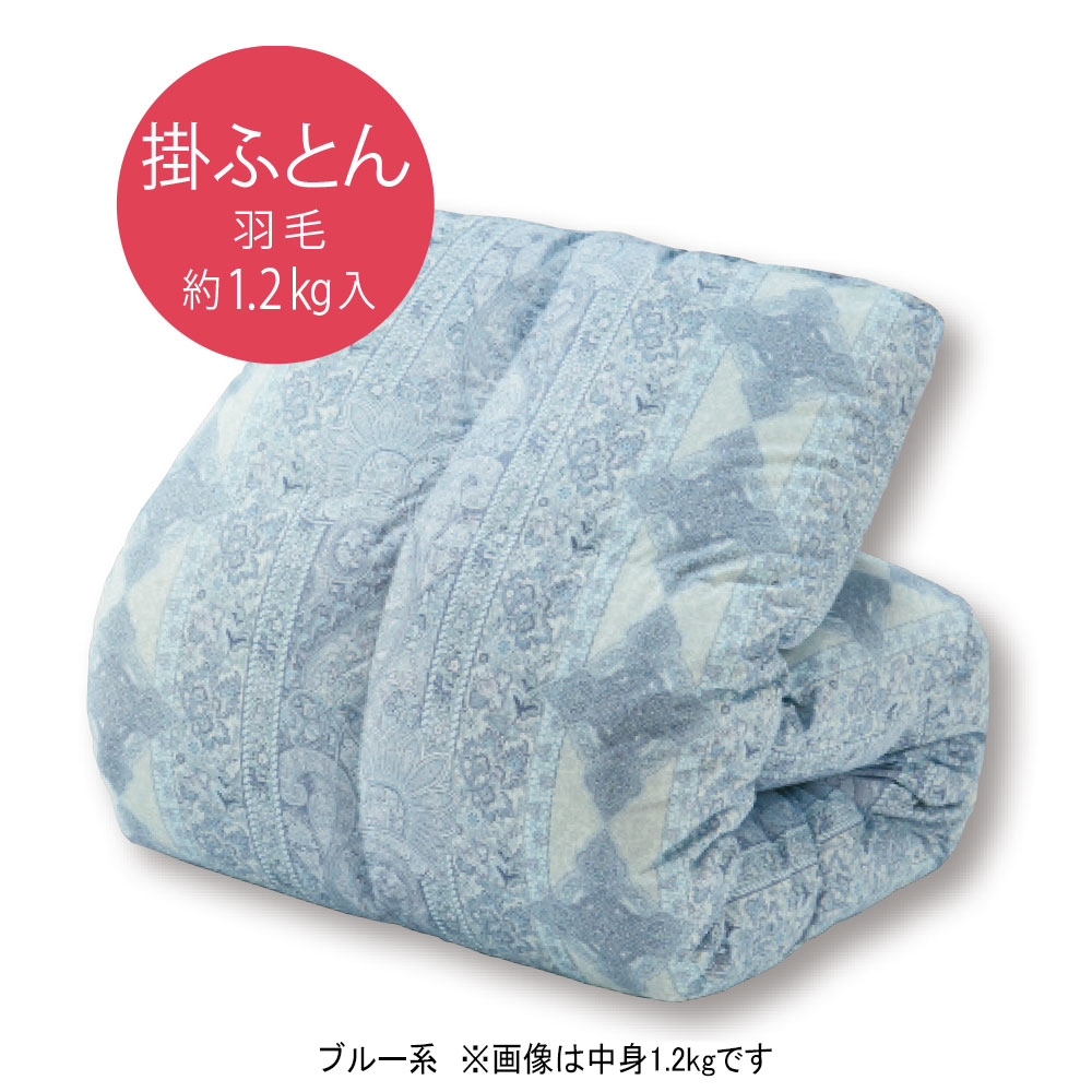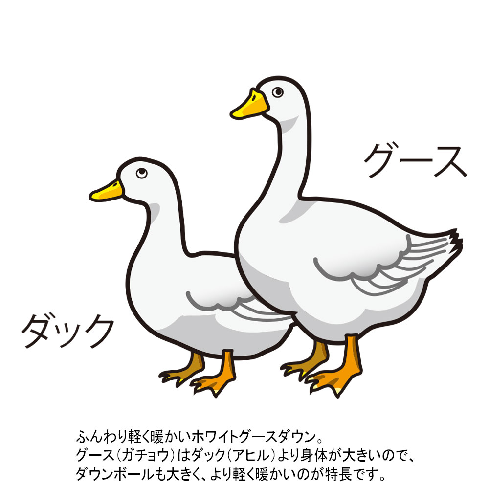フレッシュアップ加工(R)を施したホワイトグースダウン90%を使用。中身が約1.2kg入りもご用意。