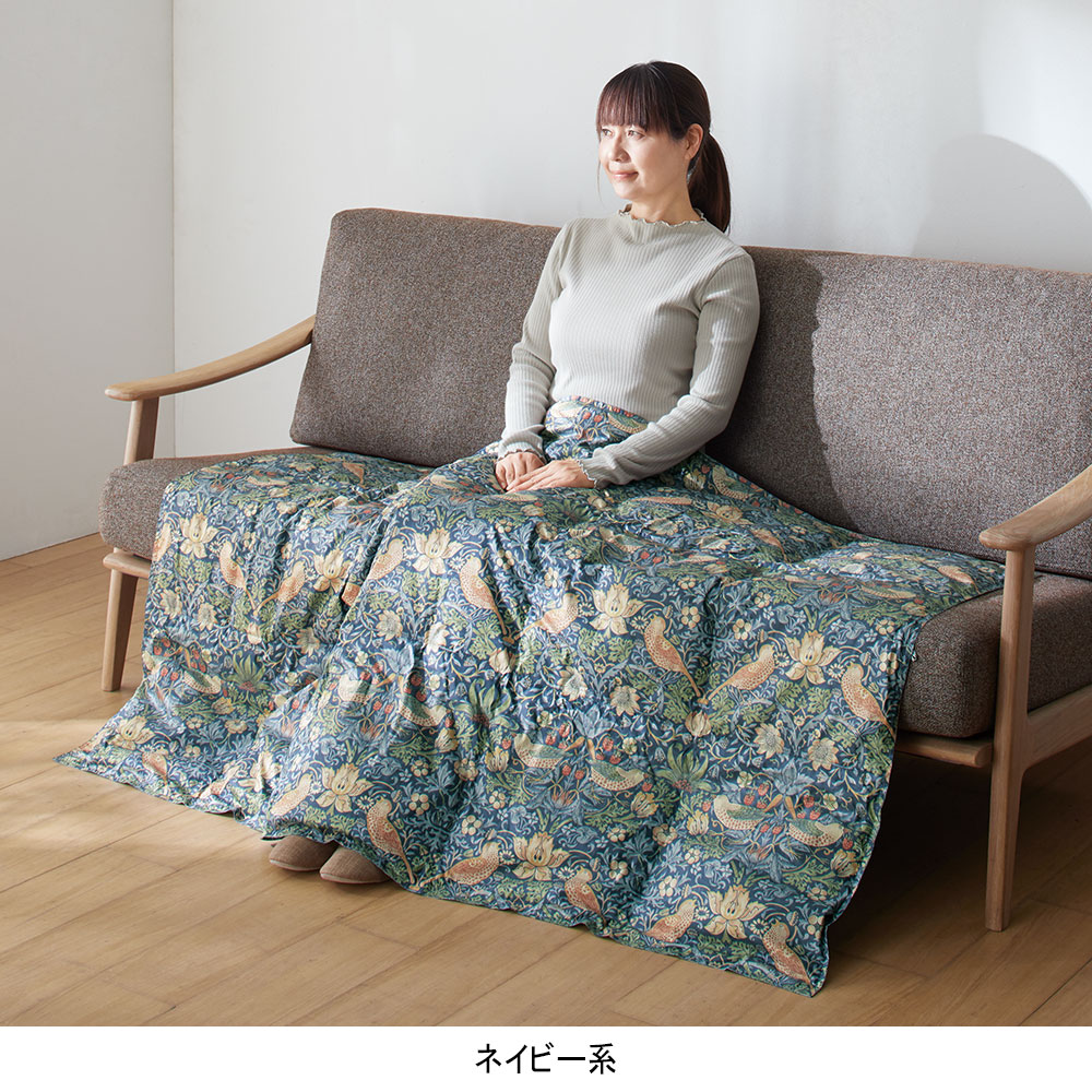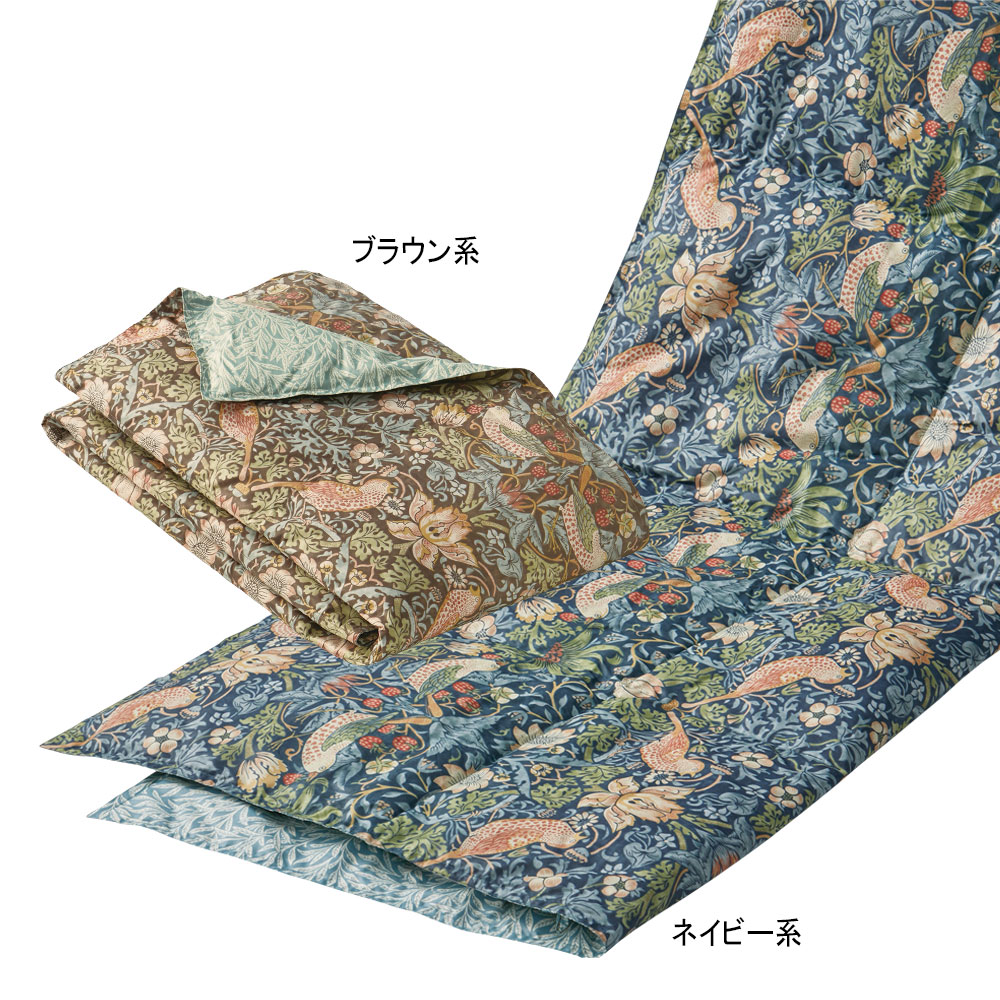 ウィリアム・モリスを代表する「いちご泥棒」柄の羽毛ハーフケット。ご家庭で洗えます。