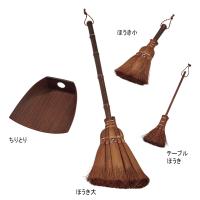 ほうきには弾力性・耐久性に優れた棕櫚(しゅろ)の木の樹皮の毛を使用。コシがあるのでゴミをかきだしやすいのが特長です。ちりとりには柿渋を手塗りし、強度と風合いを出しました。