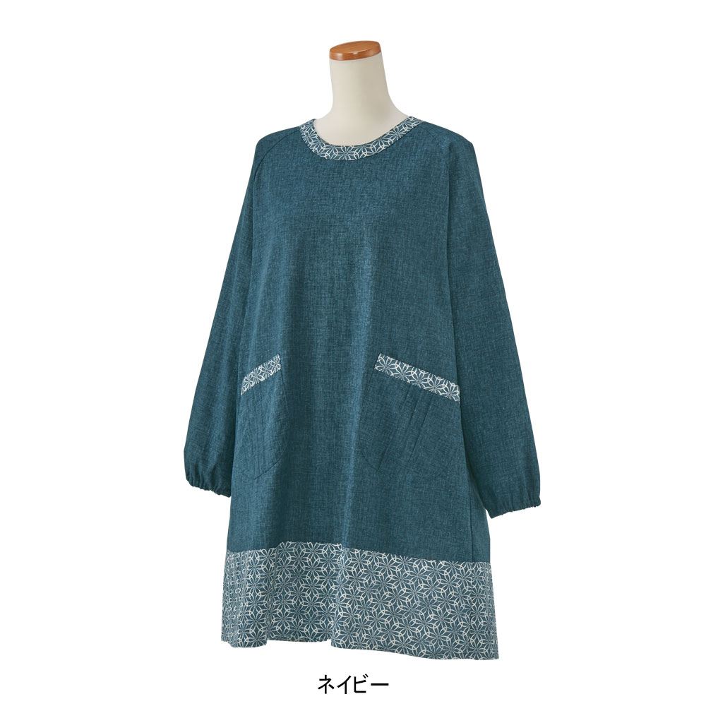 モダンな七宝柄がポイント。ラグラン袖のかっぽう着。