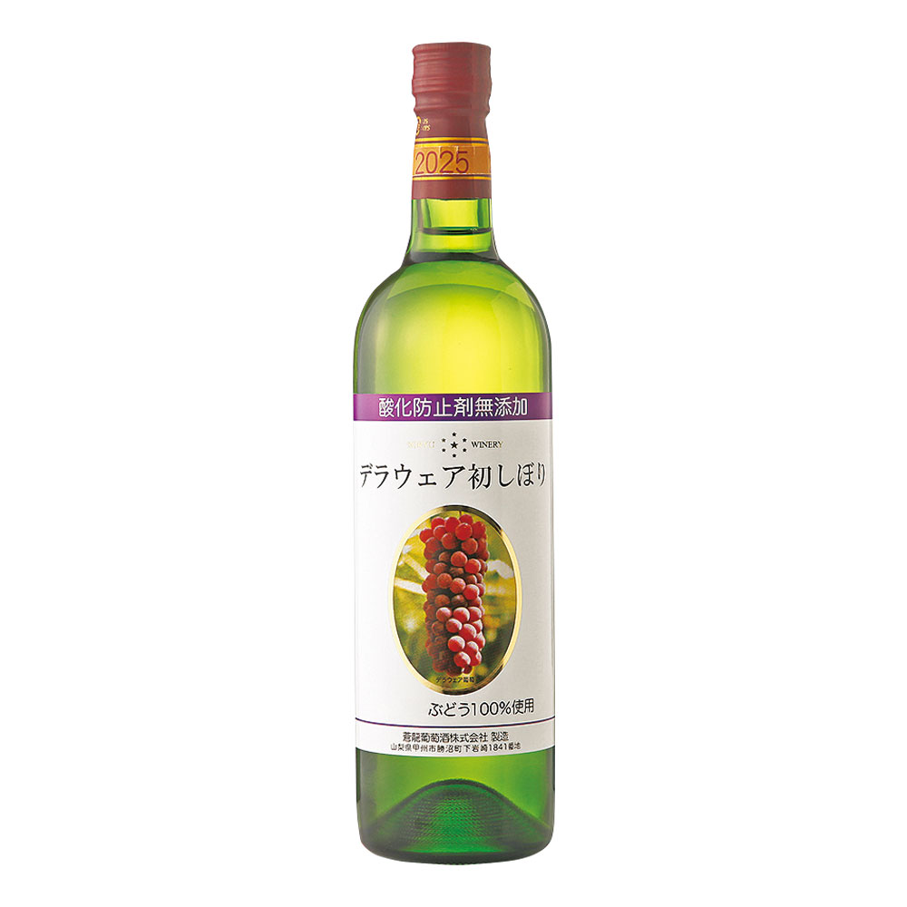 山梨県勝沼町で創業100年を超える老舗ワイナリーが、とれたてのブドウ(デラウェア・あじろん)から醸造した日本ワインヌーボー。やや甘口の味わいです。
