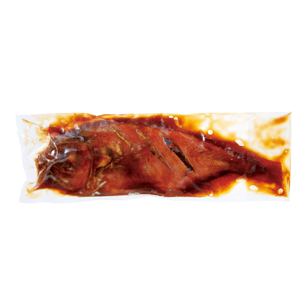 宮城県で水揚げされた脂のりの良い金目鯛を特製ダレで素材の持ち味を引き出すよう低温でじっくりと仕上げました。1尾約230gだから、見た目も華やかで食べごたえがあります。