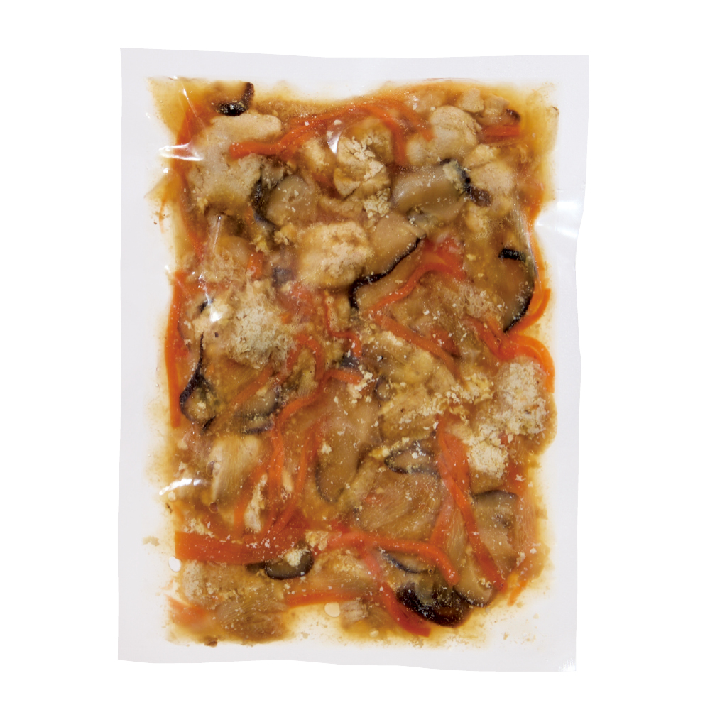 肉厚で旨味のある椎茸「天恵(てんけいこ)」を使用しました。国産鶏肉のコクも加わった炊き込みご飯の素。鰹だしの効いた醤油の香りと味わいが食欲をそそります。2合用です。
