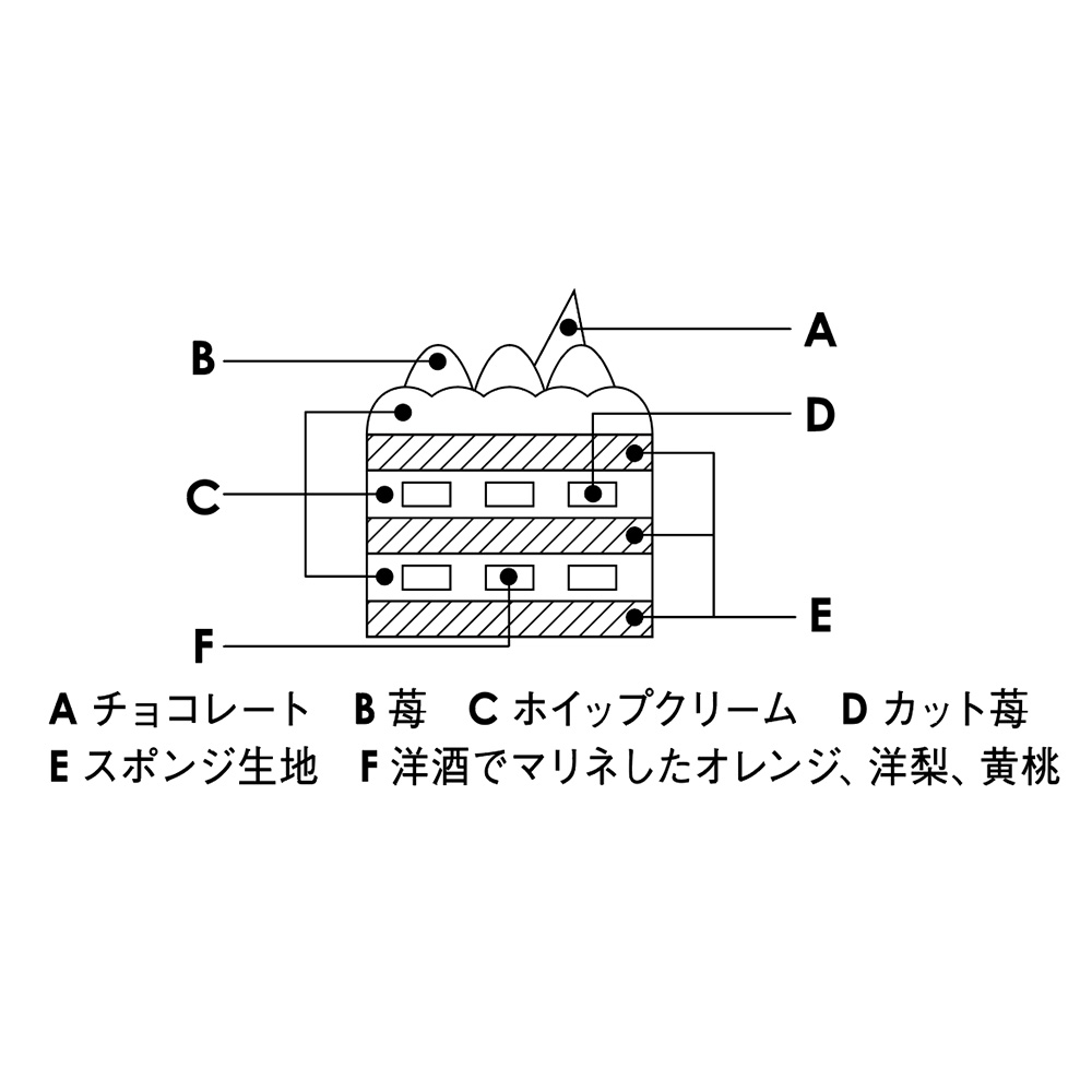 雪積もるニューヨークの公園をイメージした「グラマシーパーク」。苺やフルーツ、ホイップクリームをやわらかな生地に重ね、チョコレートのツリーや真っ赤な苺で飾りました。