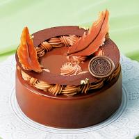 ブロンドチョコとキャラメルの香ばしいムースショコラに、芳醇なバニラの香りと甘酸っぱいミラベル、アプリコットのコンフィを合わせました。