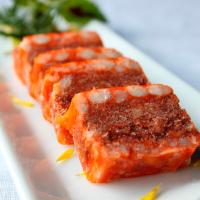 1年の中でも約2ヵ月間しか水揚げされないセイコ蟹(松葉ガニの雌)を部位ごとに層にして蒸し上げた「セイコ蟹のテリーヌ」と、ほぐし身、味噌、内子、外子を一つの珠に凝縮して蒸した「蟹の珠」をセットにしました。天の酒喰食房人気の2商品を同時に味わえる贅沢なセットです。