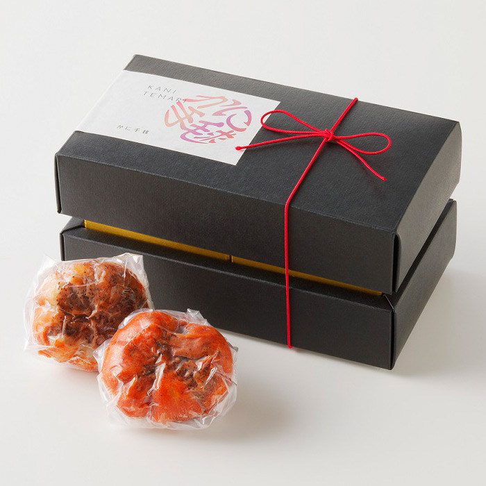 セイコ蟹(ズワイガニの雌)を部位ごとに層にして蒸し上げています。原材料はセイコ蟹と「琴引の塩」のみ。1個で約2匹分のセイコ蟹の身・外子・内子・味噌を贅沢に使用した一品。全て手作業で京都らしく「手毬」風に仕上げました。親しい方への贈答品として。また友人、知人などを招いたパーティーやお食事にそのまま出せる一品です。