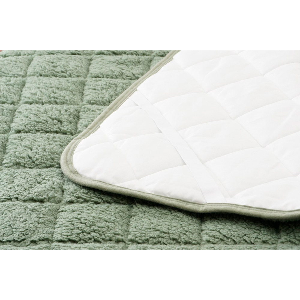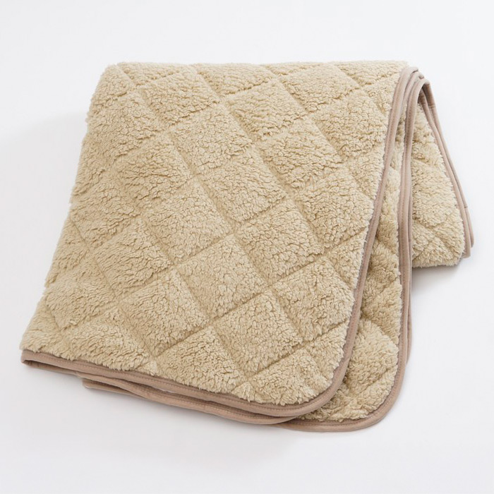 羊の毛のようなふんわり、もこもこの肌触りの敷パッドです。ご家庭で洗っていただけます。※こちらの商品は1枚入りです。ベージュとグリーンの2枚セットもございます。