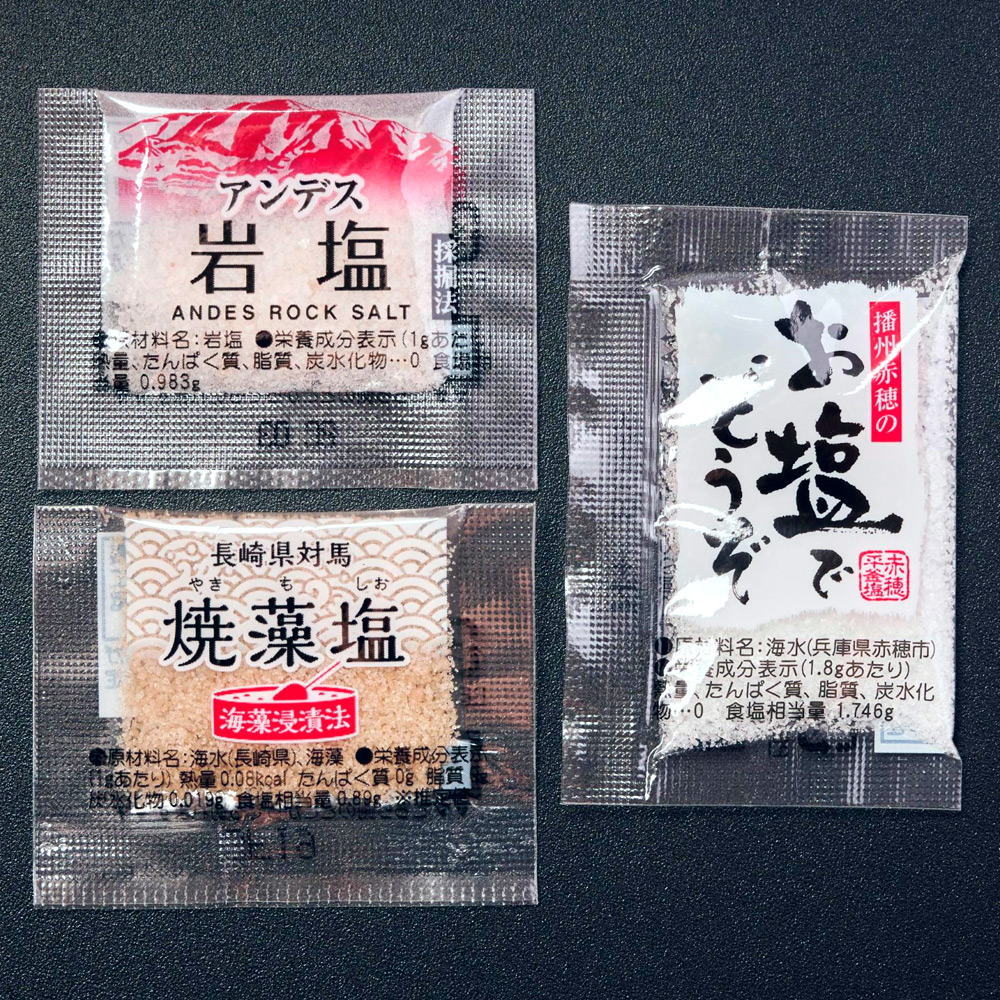 ※アンデス岩塩、焼藻塩(対馬の海水)、播州赤穂のお塩 各1付