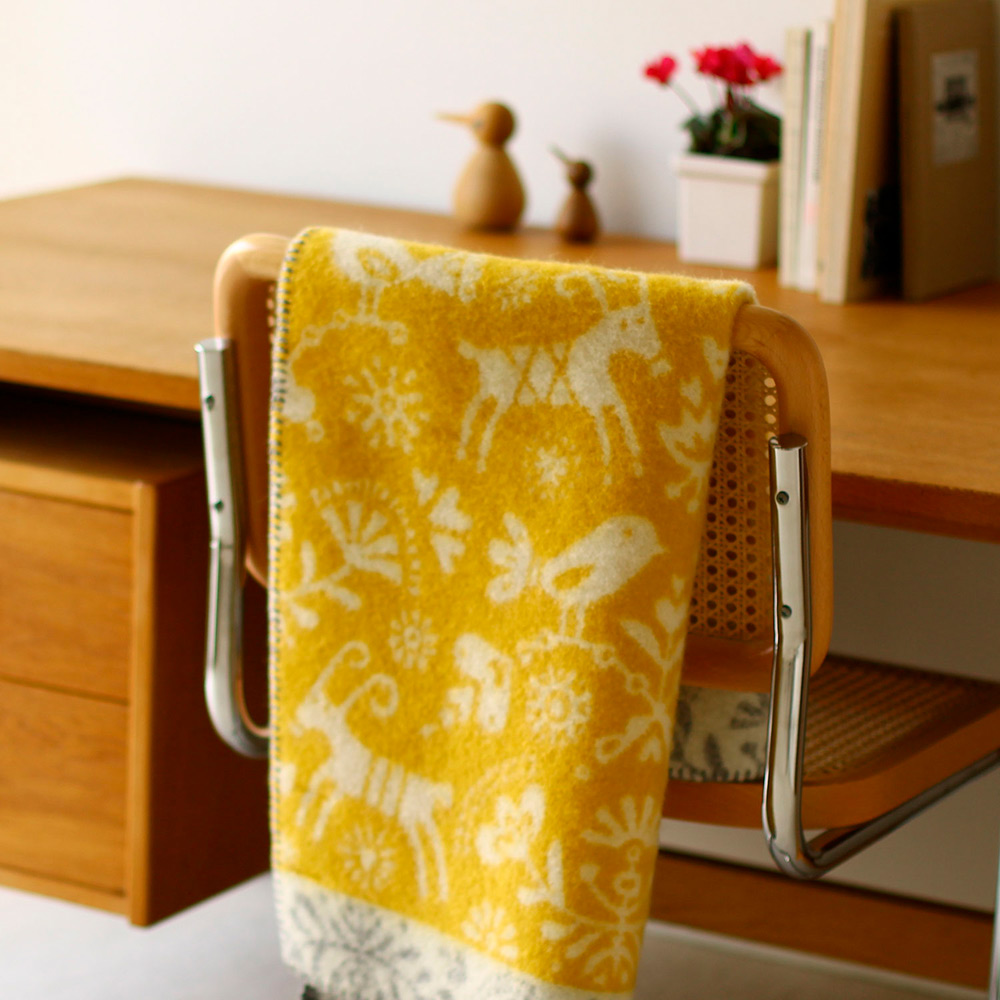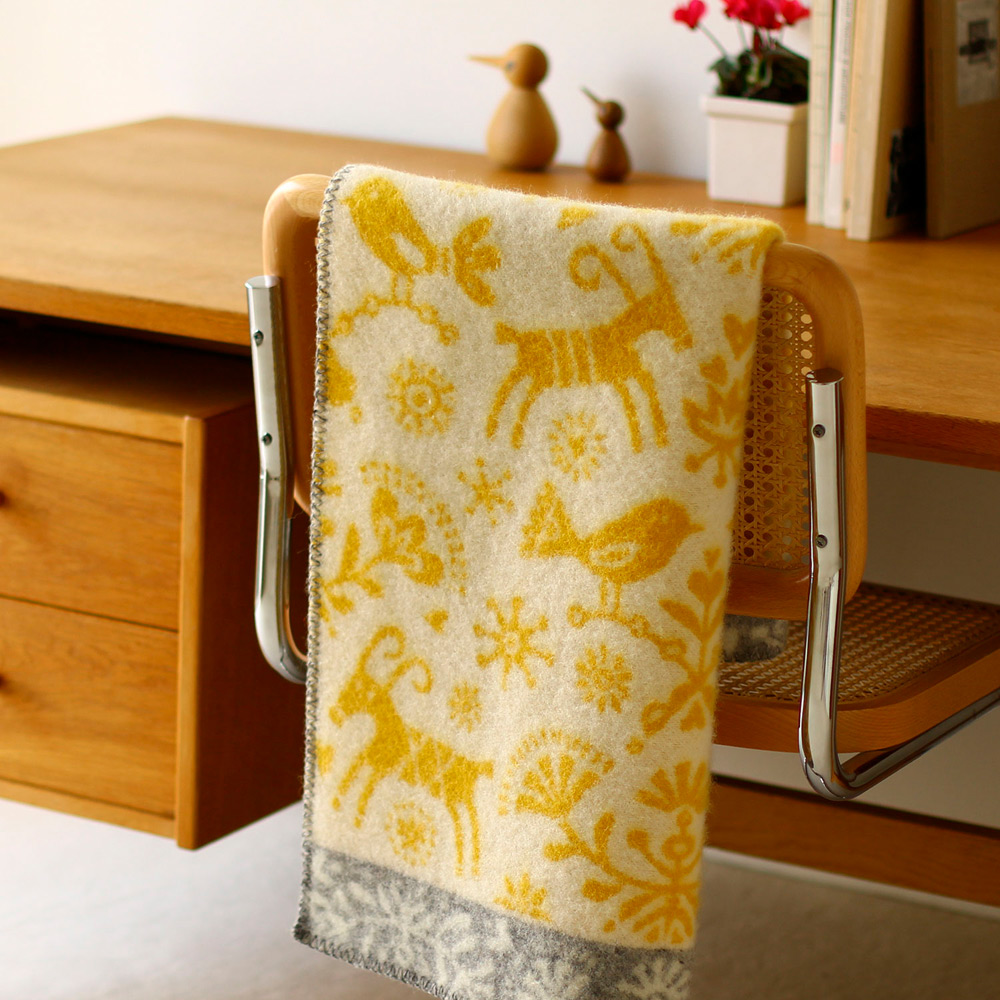 家族で過ごす北欧のクリスマスをモチーフにした、名前の通り「喜び」に溢れたデザイン。スウェーデンの伝統的なクリスマスシンボルであるヤギを主役に、小鳥や草花がベングト&ロッタらしい生き生きとしたタッチで描かれています。原産国:ラトビア