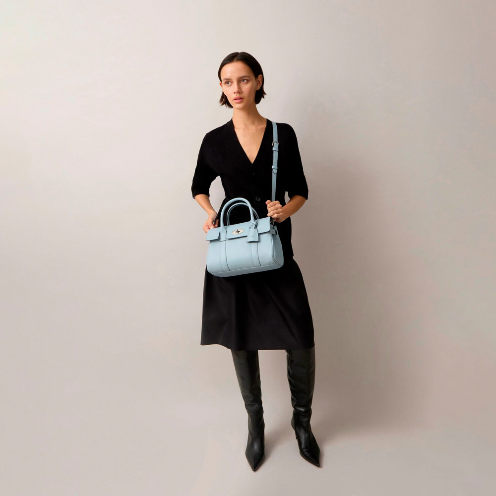コンパクトなサイズで使い勝手に優れたベイズウォーター サッチェル。マルベリーのシグネチャーであるポストマンズロックの留め具、レザーのパドロックカバー、2本のトップハンドルなど、ベイズウォーターのオリジナルモデルの特徴はそのままに、取り外し可能なショルダーストラップを備えた、汎用性に優れたアイテムです。