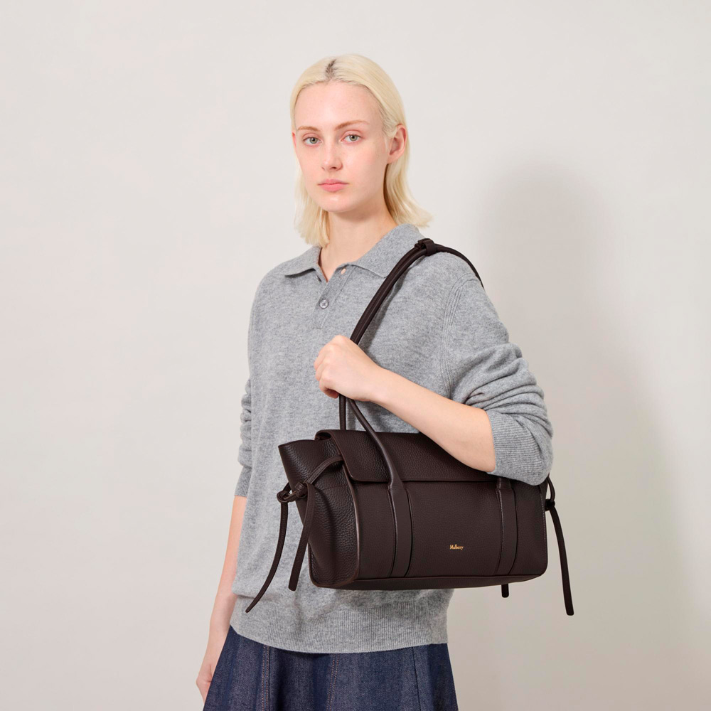 マルベリーのアイコニックなベイズウォーターのDNAはそのまま、デイリーに使いやすいカジュアルでモダンなデザインにアップデートしたスモール ソフト ベイズウォーター。箔押しエンボス加工であしらったマルベリーロゴ入り。手で持ったり、肩に掛けたりと、さまざまなスタイリングが楽しめます。タッセル飾りや、ハンドルに付けたレザー製キーパーも見逃せません。