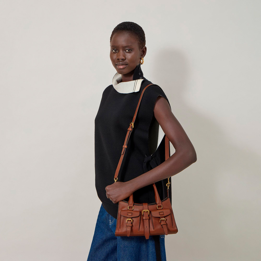 ロクサンヌ バッグをモダンにアレンジした、コンパクトなサイズのミニ ロクサンヌ。オリジナルモデルのY2Kスタイルは保ちながら、真鍮製のバックルやスマートなディテールの数々を取り入れ、現代らしいデザインにアップデートしました。フロント面には小物を入れるのに便利なポケットが2つ付いており、ストラップは長さ調節・取り外し可能なため、さまざまなスタイリングが楽しめます。