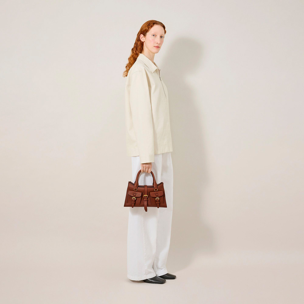 本製品にはマルベリーのアーカイブの中でも特に歴史のあるレザーを新たにアレンジした、レガシーNVTが使われています。この種のレザーは時を重ねるほどに柔らかさと色の深みが増し、経年変化により生まれるパティーナ独特の自然な風合いを楽しむことができます。