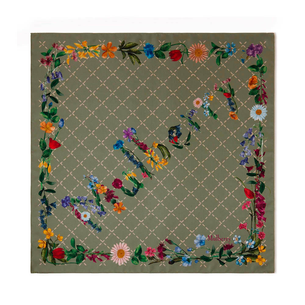 柄をプリントしたシルクツイル100%のスカーフ。首元に巻いても、お気に入りのマルベリーバッグに巻いてもお楽しみいただけるアイテムです。