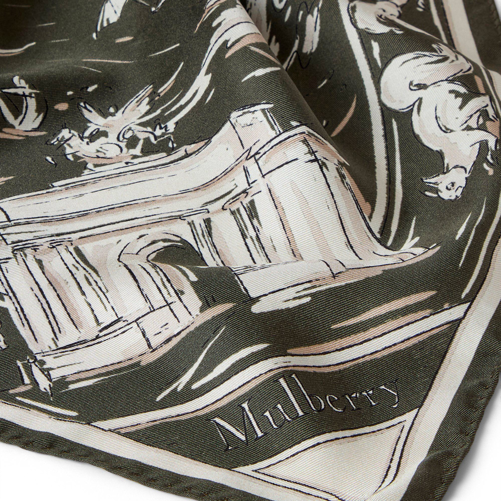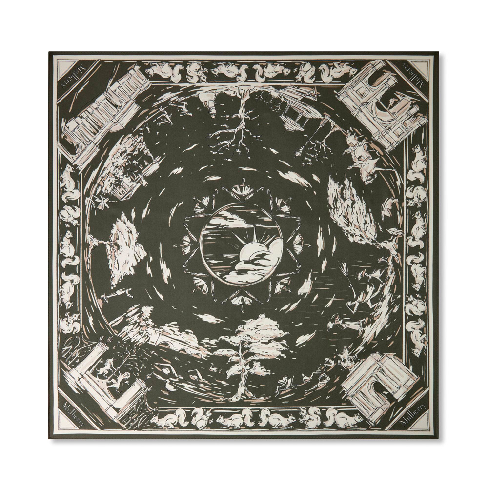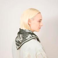 柄をプリントしたシルクツイル100%のスカーフ。首元に巻いても、お気に入りのマルベリーバッグに巻いてもお楽しみいただけるアイテムです。