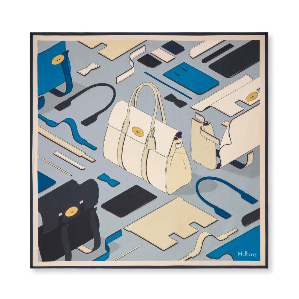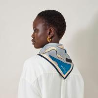 柄をプリントしたシルクツイル100%のスカーフ。首元に巻いても、お気に入りのマルベリーバッグに巻いてもお楽しみいただけるアイテムです。