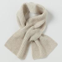 シンプルなリブ編みとバイカラーがポイントのプチマフラー。差し込むだけでお洒落にドレスアップできます。